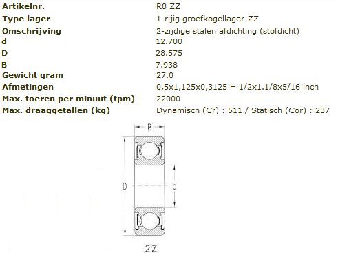 Lager R8 12,7x28,6x7,9mm. 1/2x1.1/8x5/16 inch.