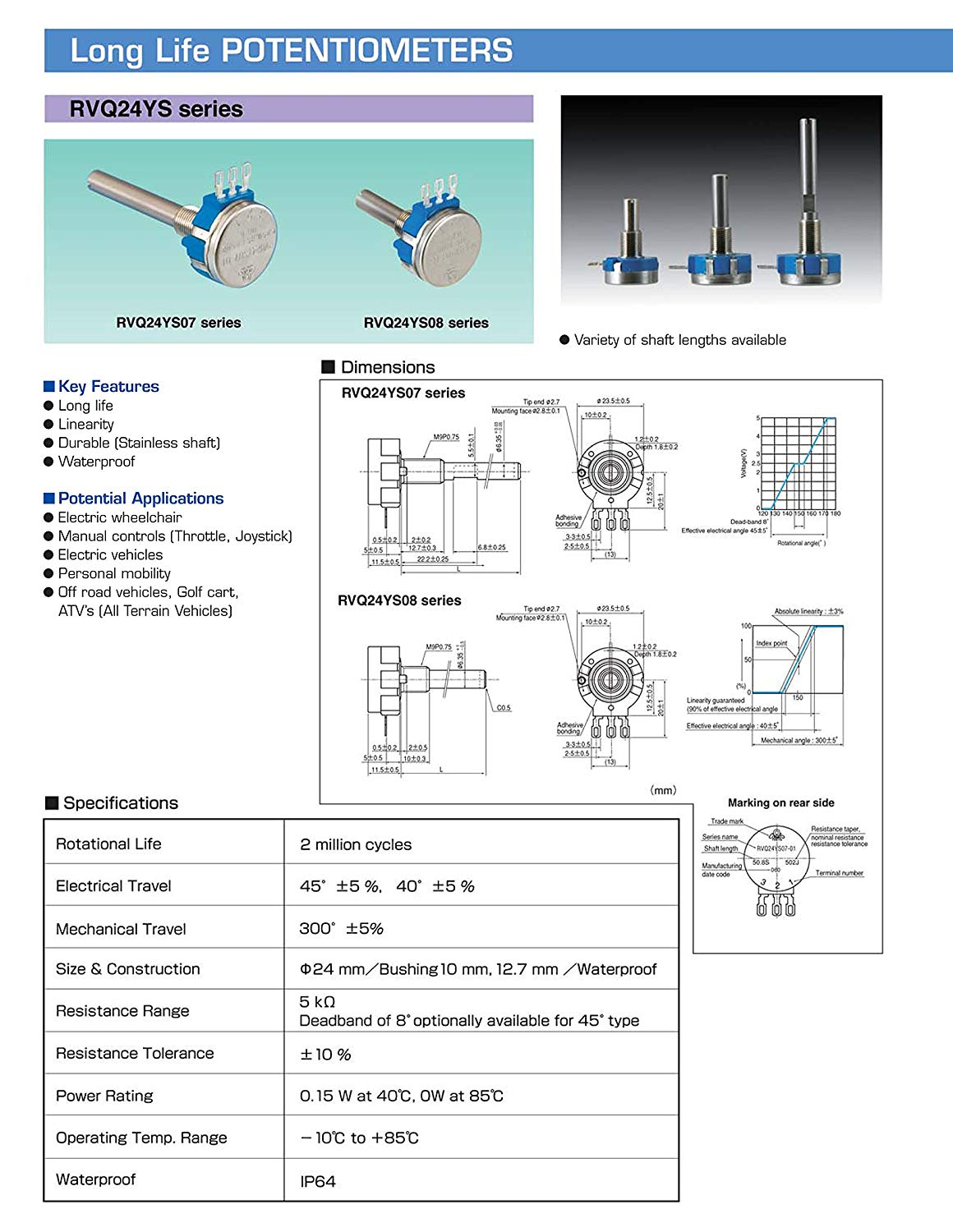 Gaspotmeter 5K Galaxy zonder handel Vermogen 0.15W 10% Asdiameter 6mm Schroefdraad M9 x 0.75